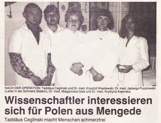 Sława o dokonaniach Tadeusza Ceglińskiego przekroczyła granice Republiki Federalnej Niemiec. O fenomenie Ceglińskiego były audycje w radio. Obszernie o jego sukcesach zaczęła rozpisywać się prasa w Polsce. Popularność i prasowe artykuły sprawiły, że osiągnięciami i zdolnościami  Tadeusza Ceglińskiego zainteresował się polski naukowiec z umysłem otwartym także na niewytłumaczalne dr n. med. Krzysztof Wasilewski, który wprowadził Tadeusza Ceglińskiego w polskie środowisko naukowe. Pracując na Oddziale Chirurgii Przewodu Pokarmowego w szpitalu klinicznym w Katowicach, będący adiunktem Śląskiej Akademii Medycznej doktor Krzysztof Wasilewski zwrócił uwagę na dokonania Tadeusza Ceglińskiego w Republice Federalnej Niemiec i zainteresował nimi swojego mentora, Prorektora ds. Klinicznych Śląskiej Akademii Medycznej, prof. dr. hab. n. med. Zygmunta Górkę. We wrześniu 1990 roku profesor Zygmunt Górka po spotkaniu z profesorem Günterem Wiegelmannem w Münster, wyraził gotowość do kontynuowania w Polsce badań nad fenomenem organizmu Tadeusza Ceglińskiego. Pozwoliło to na przeprowadzenie licznych badań i eksperymentów: w Centralnym Szpitalu Klinicznym, Wojewódzkiej Poradni Leczenia Bólu, w Zakładzie Chemii Fizycznej Uniwersytetu Śląskiego w Katowicach i Śląskiej Akademii Medycznej, mających na celu próbę wyjaśnienia daru, jakim jest jego zdolność uzdrawiania.